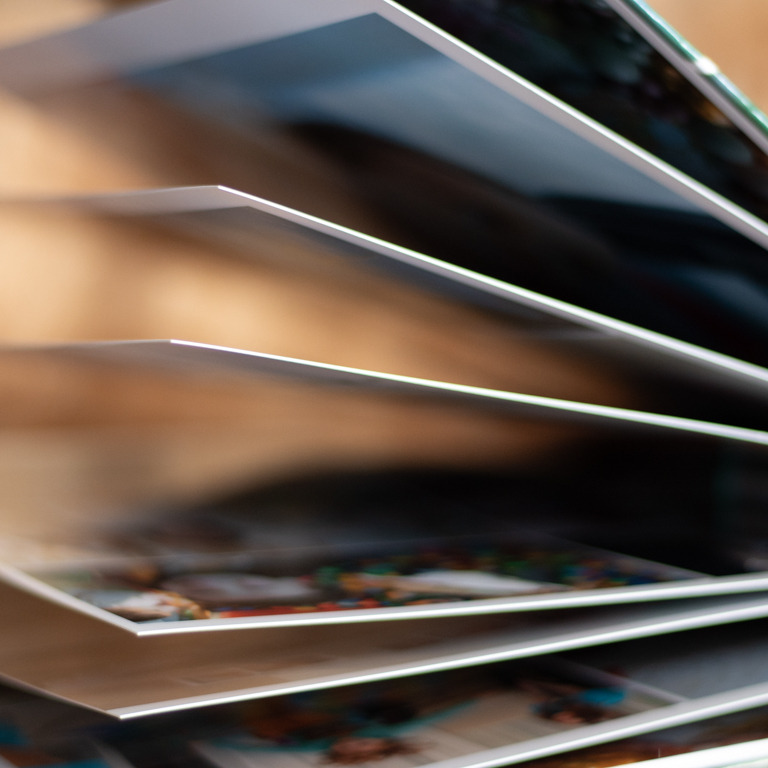 Utilizamos papel 500g/m² + acabamento em verniz alto brilho que protege e valoriza as cores da foto.