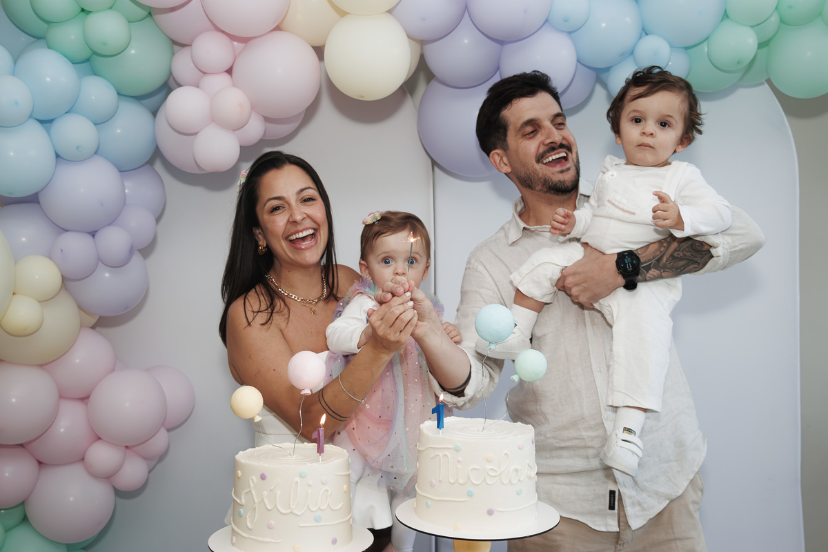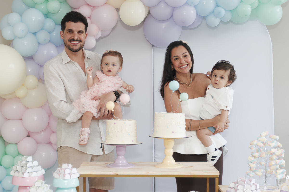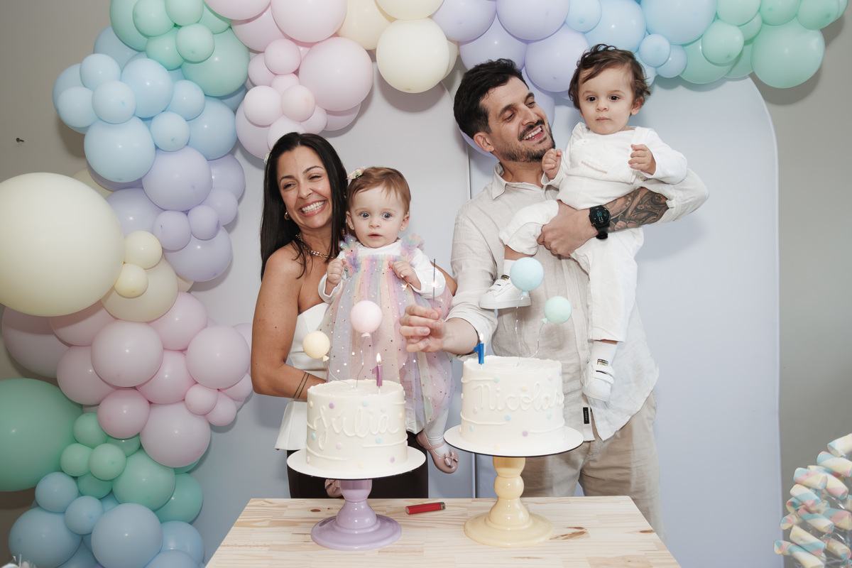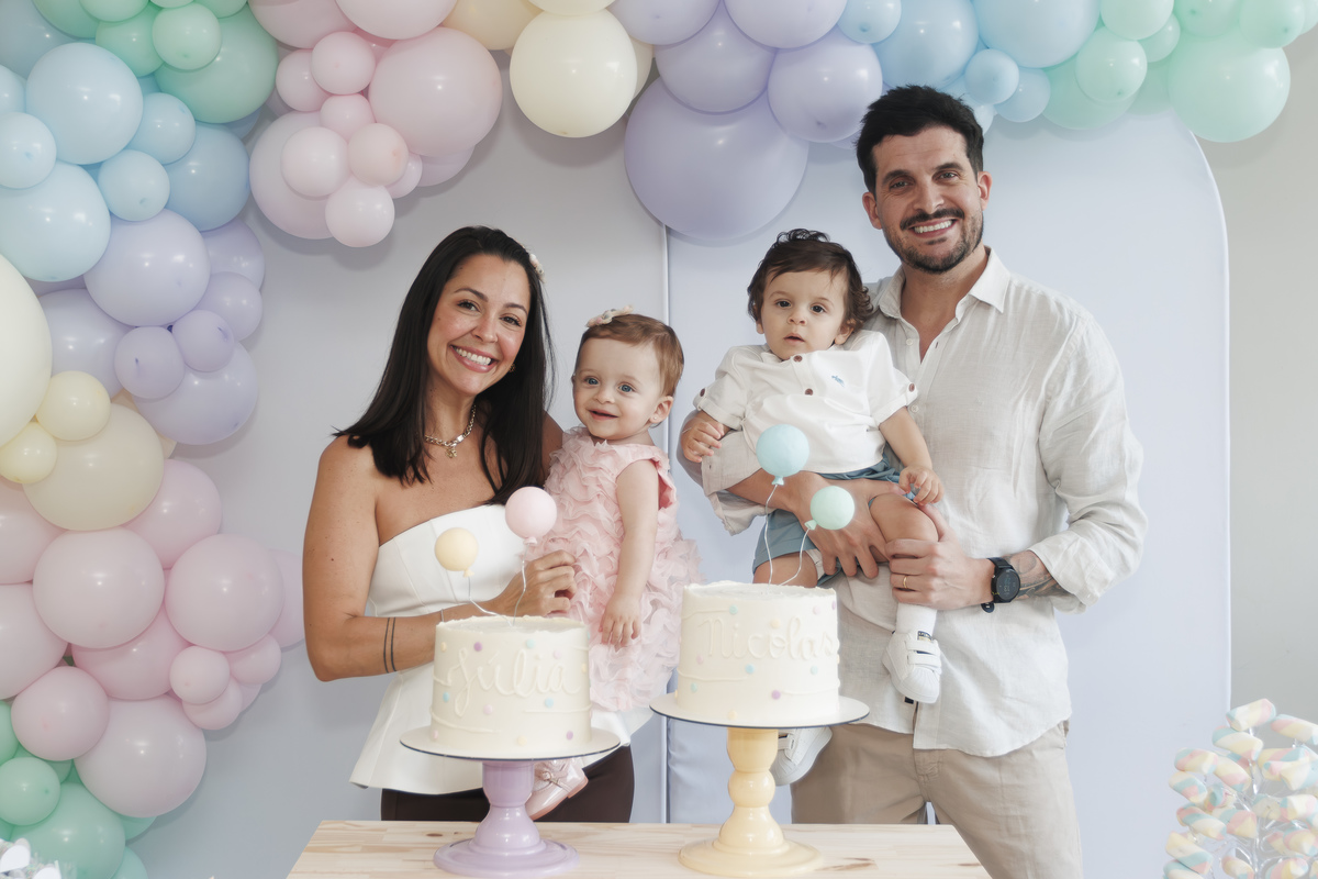 O primeiro aniversário de Júlia e Nicolas foi uma celebração doce e delicada, com tons pastel, balões suaves e sorrisos que abraçam a alma. Um momento de união e leveza, vivido em família, onde cada detalhe foi pensado com carinho. Essas imagens são mais do que fotos — são memórias que florescem no tempo.