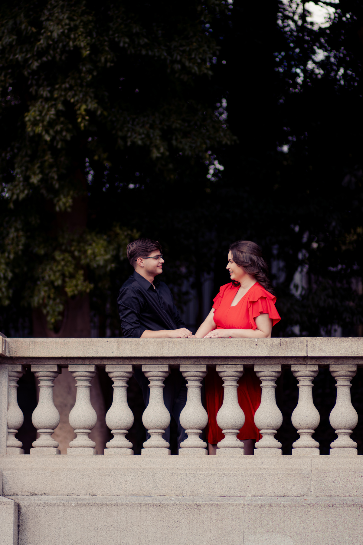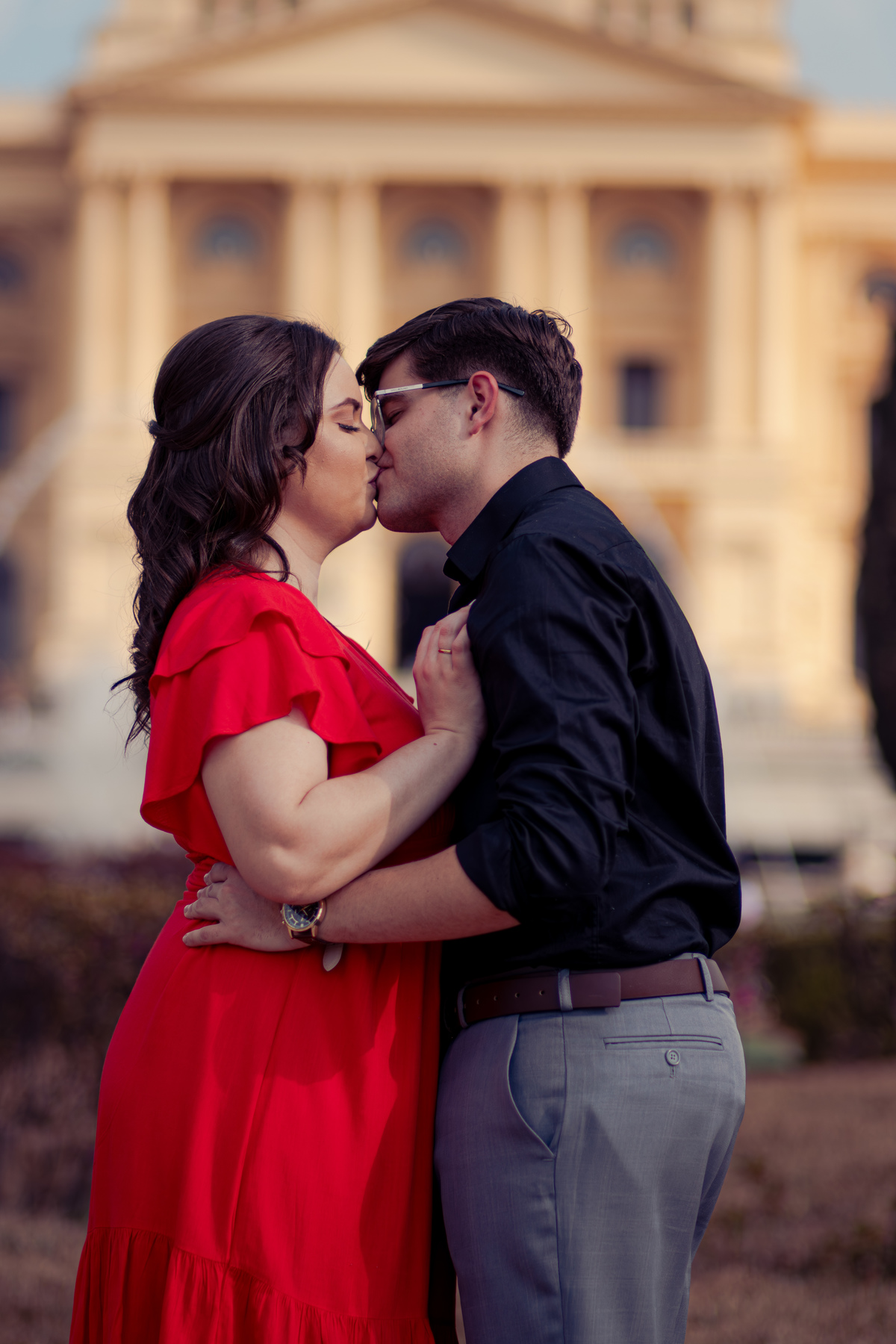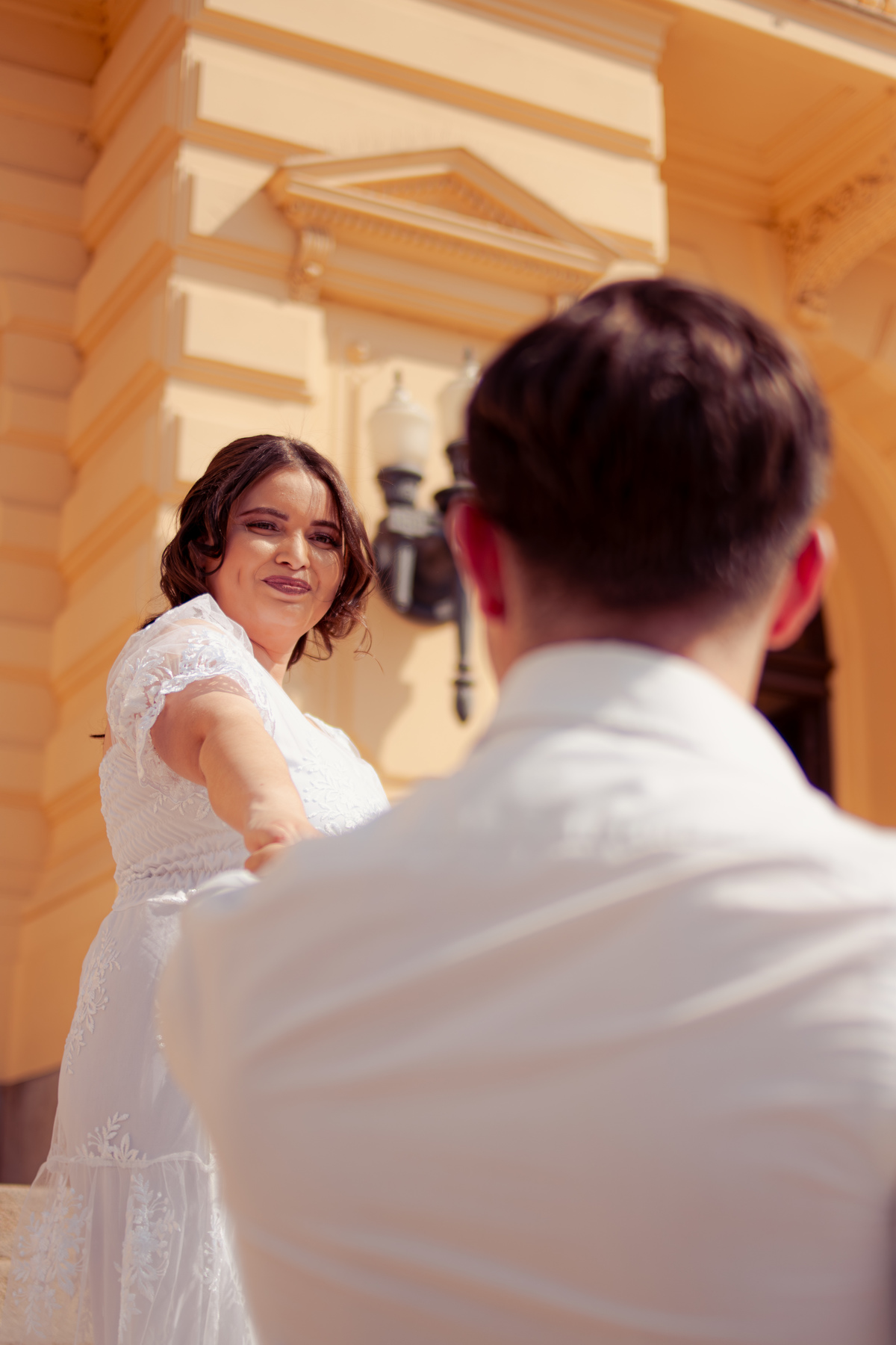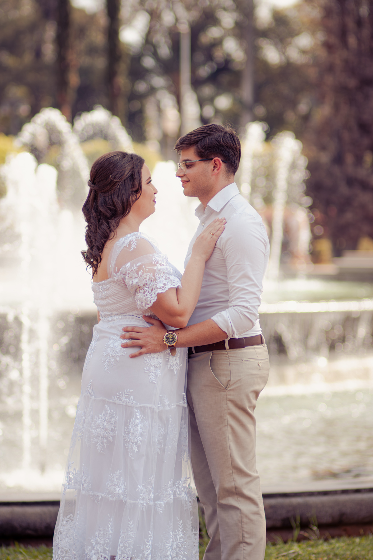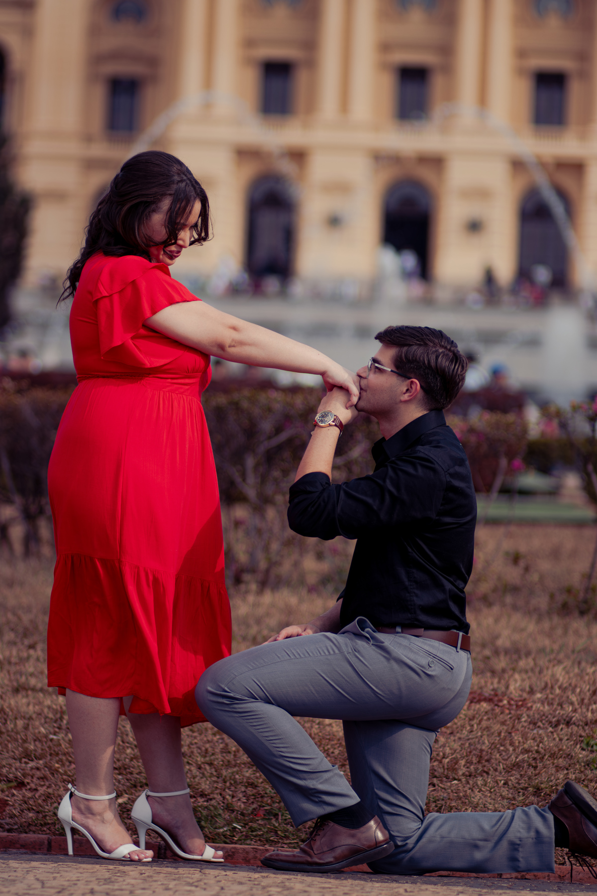 De mãos dadas, entre conversas leves e risadas espontâneas, o ensaio se construiu mais como um passeio do que como uma sessão. A arquitetura clássica serviu de cenário para um sentimento simples e forte: a escolha diária de estar junto.