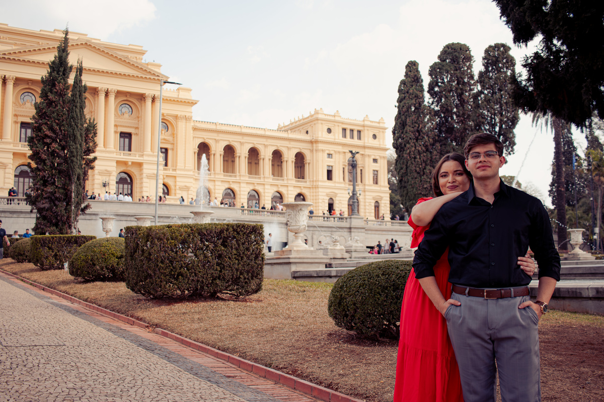 O ensaio pré-wedding da Ana e do Matheus aconteceu em um lugar onde o tempo ganha outra dimensão. Entre a imponência do Museu do Ipiranga, os jardins ao redor e a luz suave da tarde, o amor deles encontrou espaço para caminhar sem pressa.