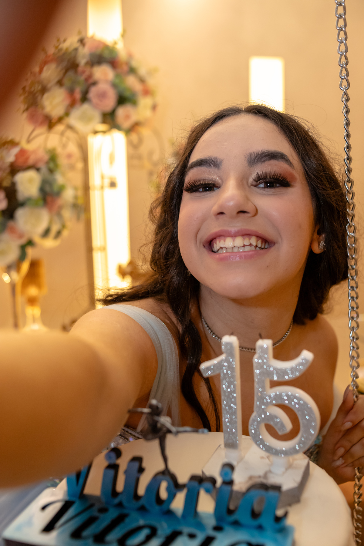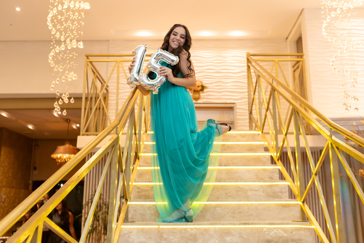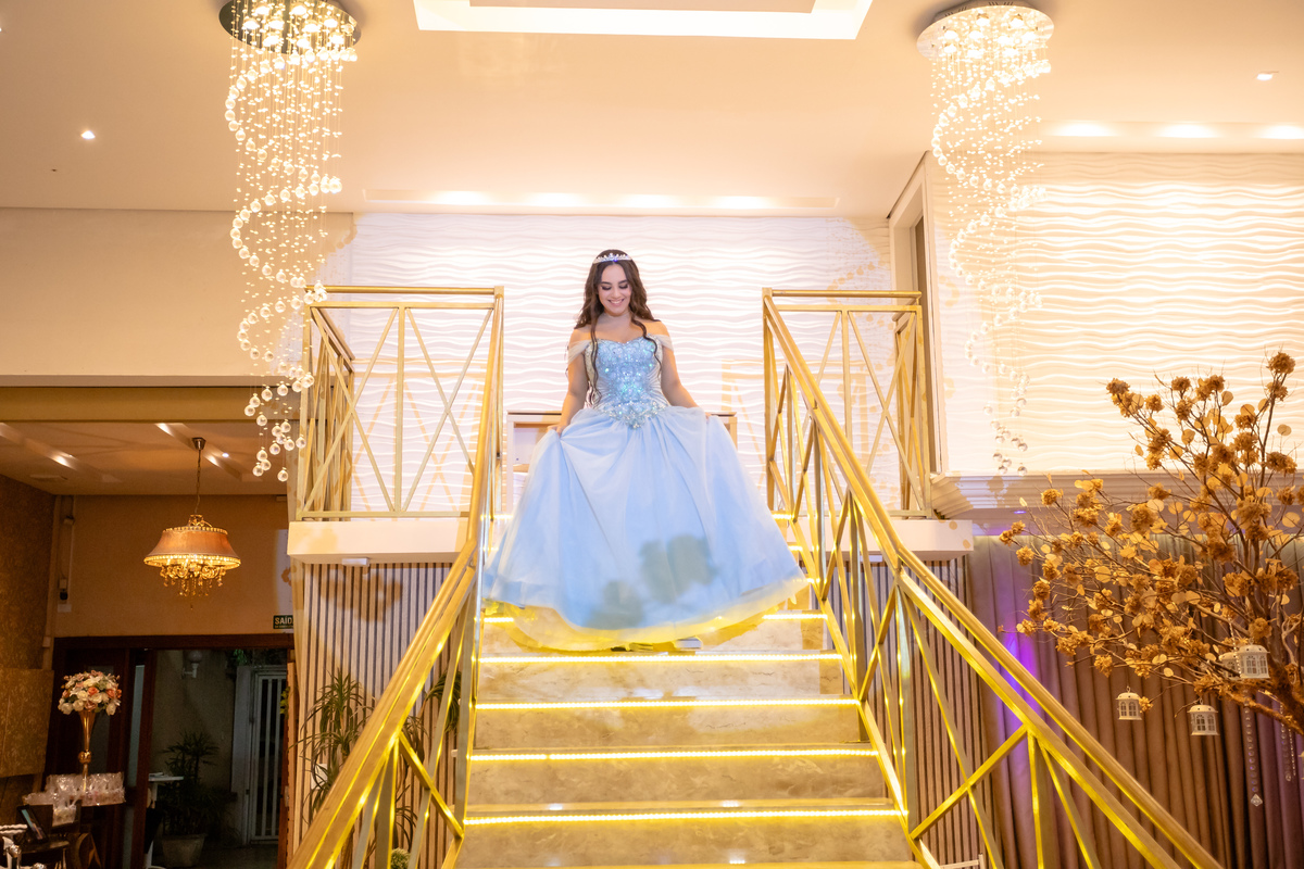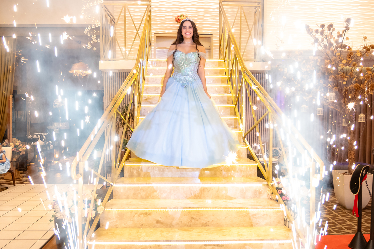 Ao descer as escadas, radiante e cheia de alegria, Vitória encantou a todos com seu sorriso, marcando o início de uma noite inesquecível. Rodeada pelo amor de sua família e amigos, ela celebrou essa nova fase com a leveza de quem sonha alto e a força de quem está pronta para abraçar o futuro.