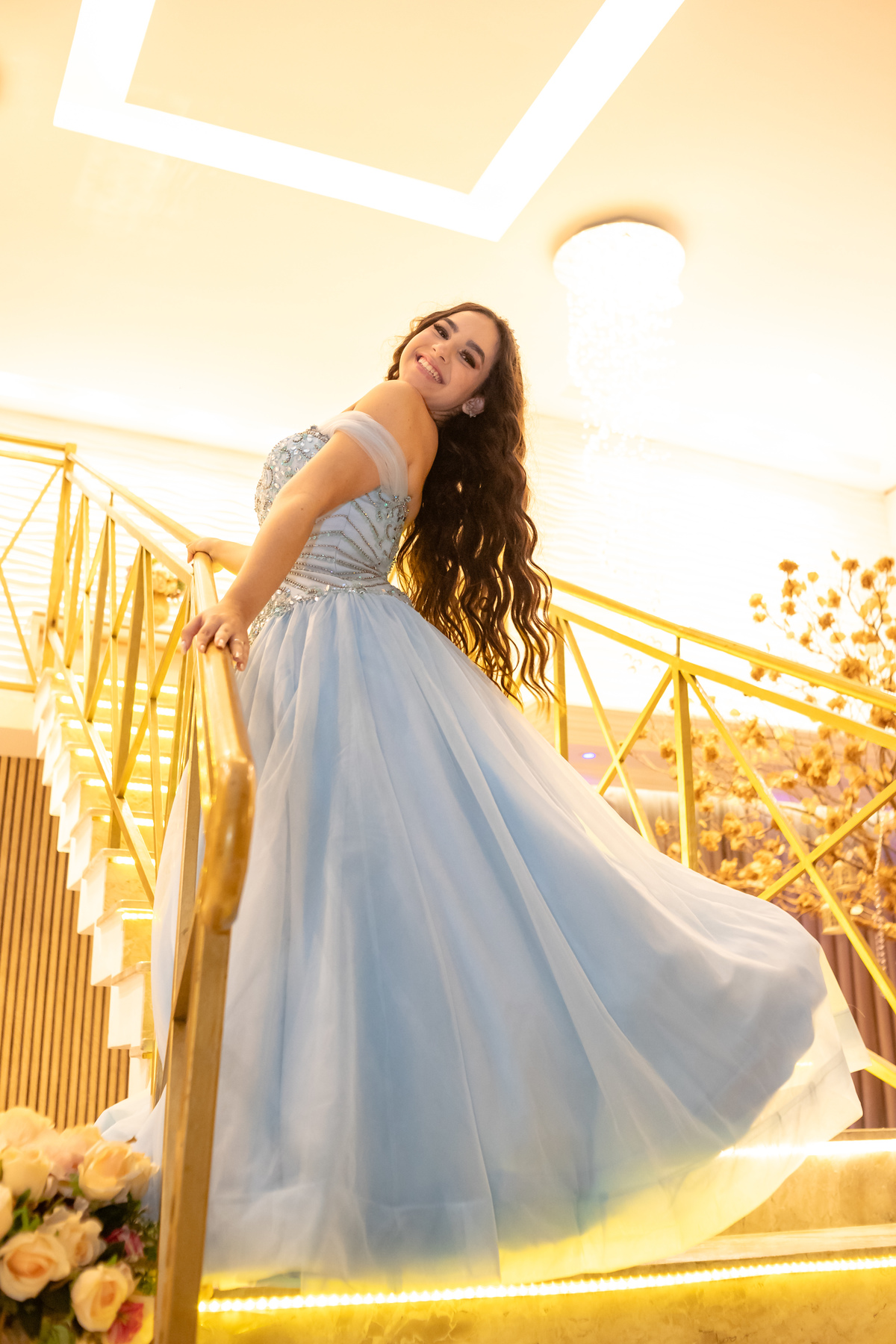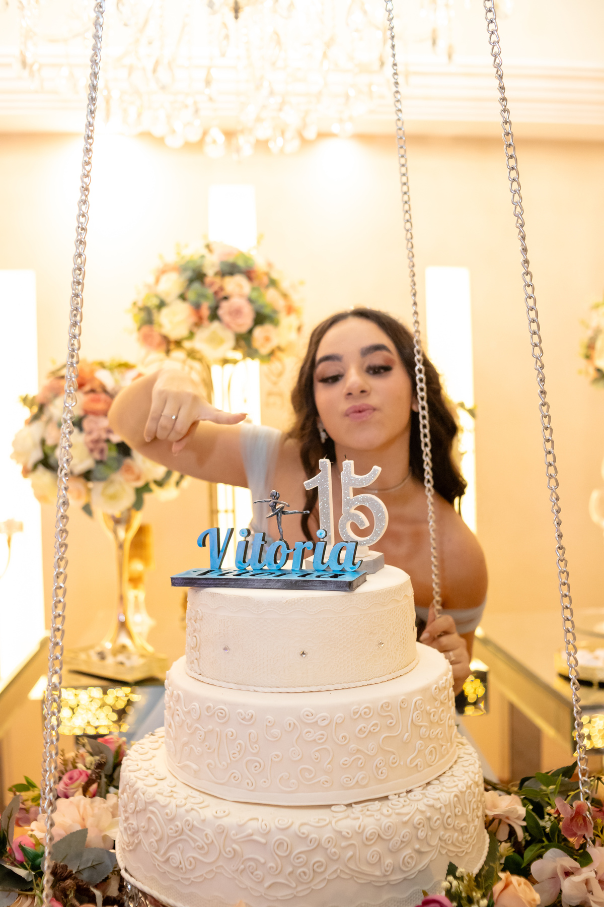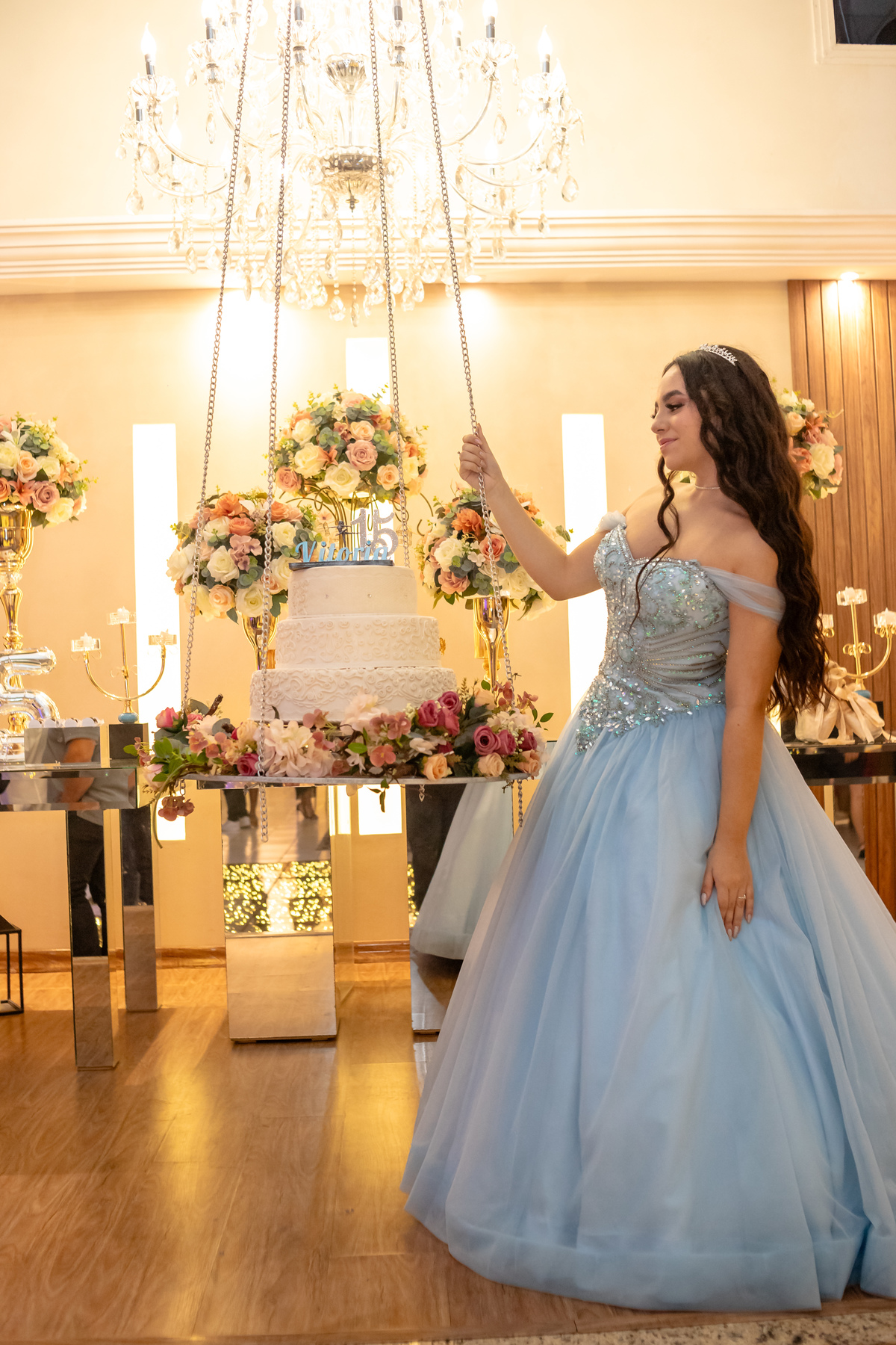 Ao descer as escadas, radiante e cheia de alegria, Vitória encantou a todos com seu sorriso, marcando o início de uma noite inesquecível. Rodeada pelo amor de sua família e amigos, ela celebrou essa nova fase com a leveza de quem sonha alto e a força de quem está pronta para abraçar o futuro.