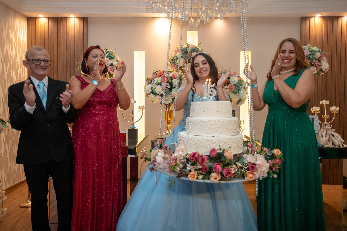 Vitória celebrou seus 15 anos como uma verdadeira princesa, em um momento repleto de encanto e emoção. Cada detalhe foi pensado para trazer à vida um conto de fadas único, desde o brilho impecável do vestido até as luzes que iluminaram sua entrada triunfal.