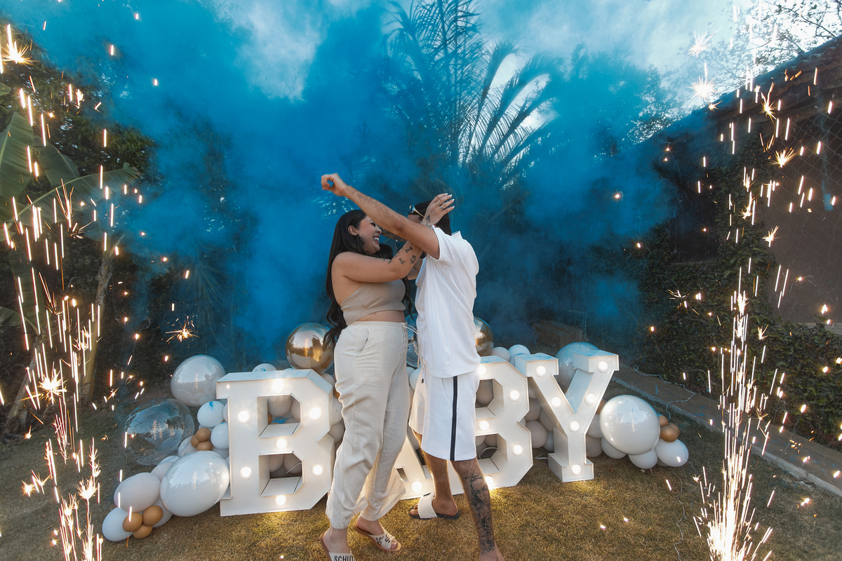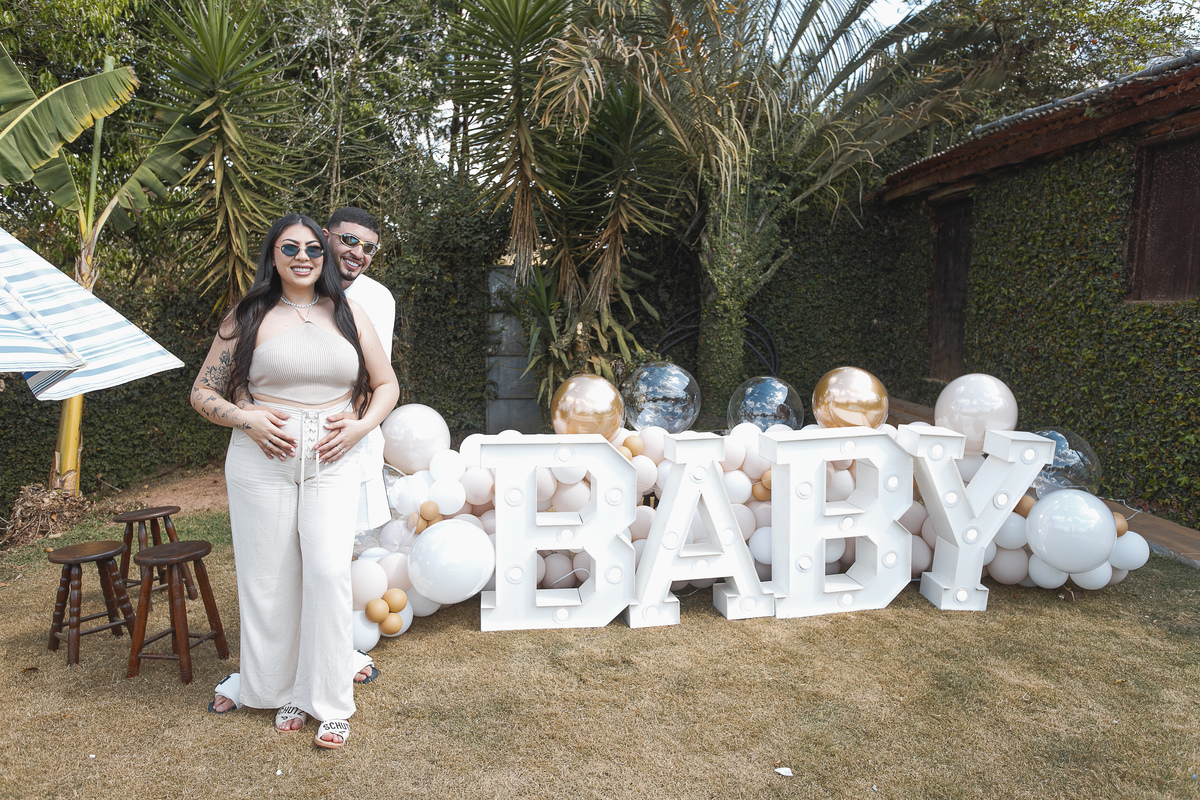 O chá revelação deste casal foi exatamente assim: um encontro marcado pela delicadeza dos detalhes, pela emoção contida nos olhares e pela alegria que transbordou no instante da revelação.