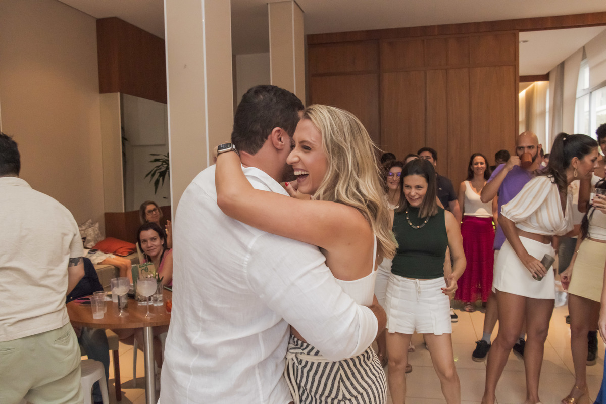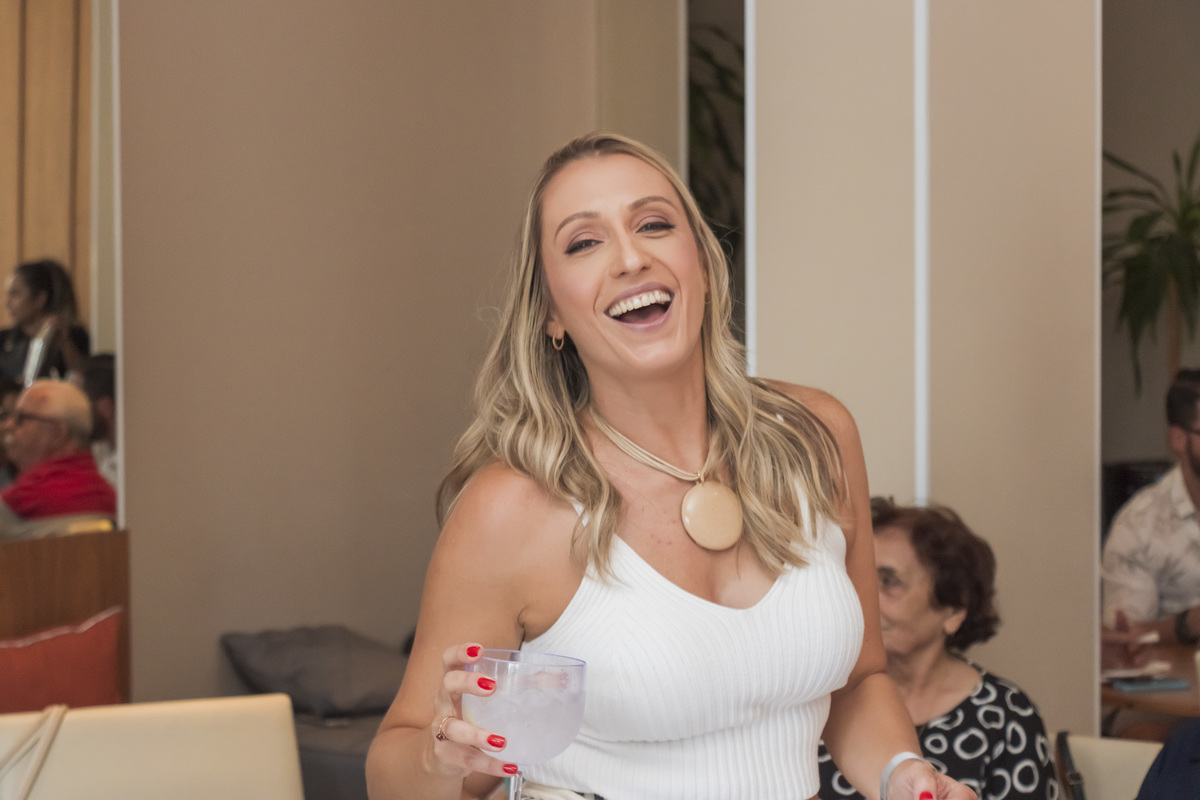 Entre os tons suaves de rosa, dourado e arranjos florais delicados, o clima foi de descontração, sorrisos e muita animação. A pista de dança ganhou vida, com passos ritmados e a vibração de quem sabe valorizar cada momento.